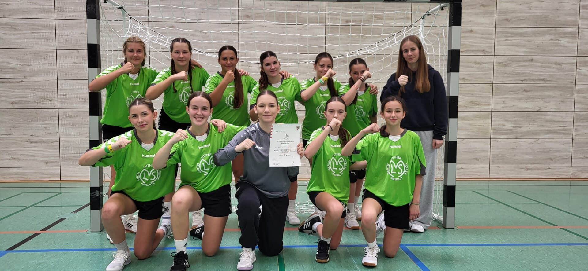 Die Martin-Luther-Schule Rimbach stellte in den letzten Wochen vier Handballmannschaften bei den Schulturnieren „Jugend trainiert für Olympia“, je eine Mädchen- und Jungenmannschaft in den Altersklassen U16 und U14. Die Turniere fanden im Rahmen des Schulamtsentscheids statt, bei dem die Schulmannschaften des Kreises Bergstraße und des Odenwaldkreises gegeneinander antraten. Die Mädchen U16 hatten das erste Turnier in Bensheim. Hier trafen sie auf die Mannschaften aus Bensheim (AKG), Reichelsheim (GAZ), Lampertheim (Lessinggymnasium) und Oberzent. Das Team der MLS, das fast ausschließlich aus Spielerinnen der HSG Fürth-Krumbach bestand, zeigte tolle Spielzüge und eine hohe Motivation, sodass nur das Spiel gegen das AKG Bensheim verloren ging. Somit haben sich die Mädchen für die nächste Runde, den Regionalentscheid qualifizieren können. Als Schülertrainerin war Luana Laupichler dabei und hatte durch ihr taktisches Wissen erheblich zum Erfolg beigetragen. Als Schiedsrichter waren Max Gölz und Moritz Knogler eingesetzt.