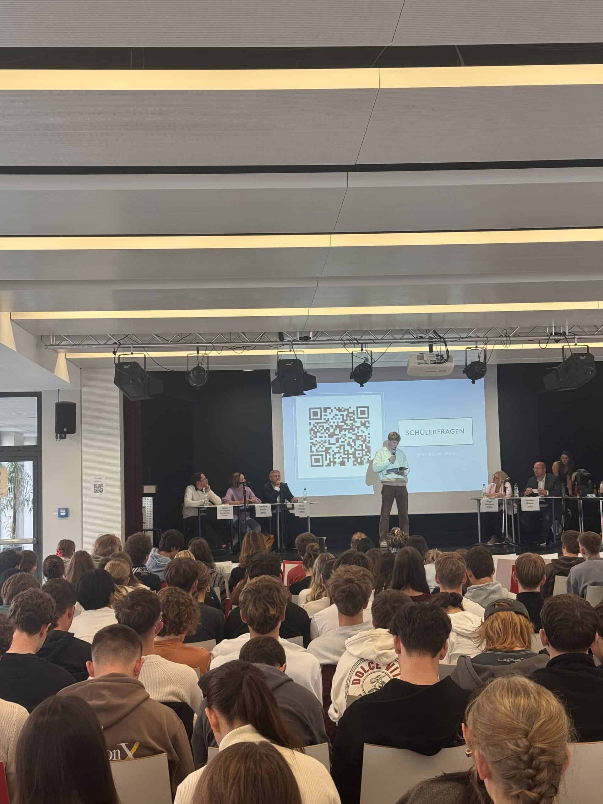 Darüber hinaus konnten die Schülerinnen und Schüler Fragen digital einreichen, die am Ende in die Diskussion einflossen. Dabei kamen auch sensiblere Themen wie der Umgang mit Abtreibung zur Sprache.